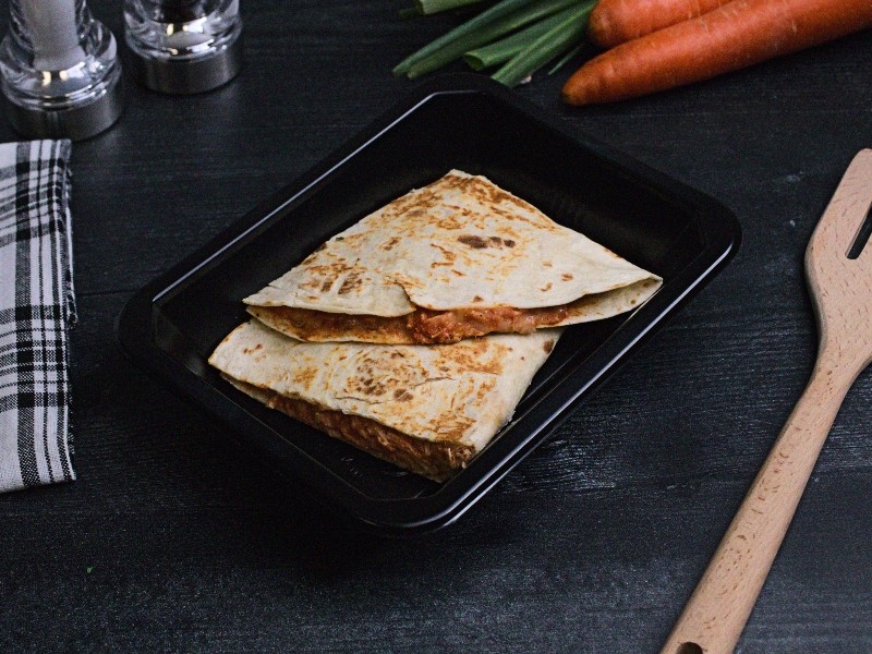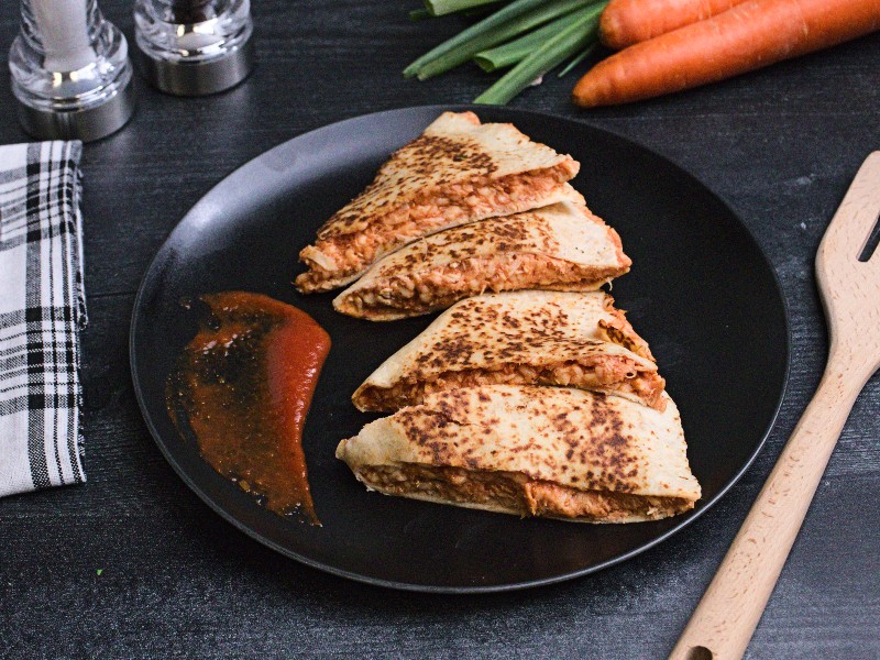 Hormone-free chicken breast, gluten free wrap, low-fat mozzarella cheese, tomatoes, carrot puree, extra virgin olive oil, garlic, onion, salt, italian seasoning